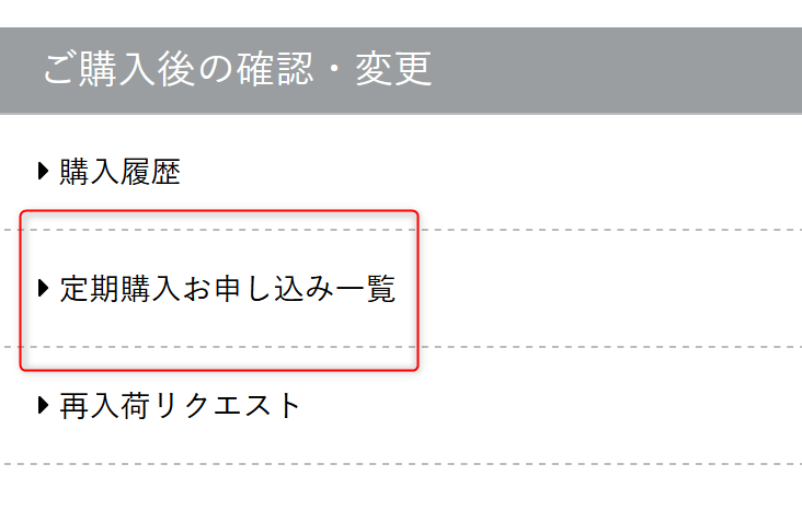 2.「ご購入後の確認・変更」の「定期購入お申し込み一覧」をクリック